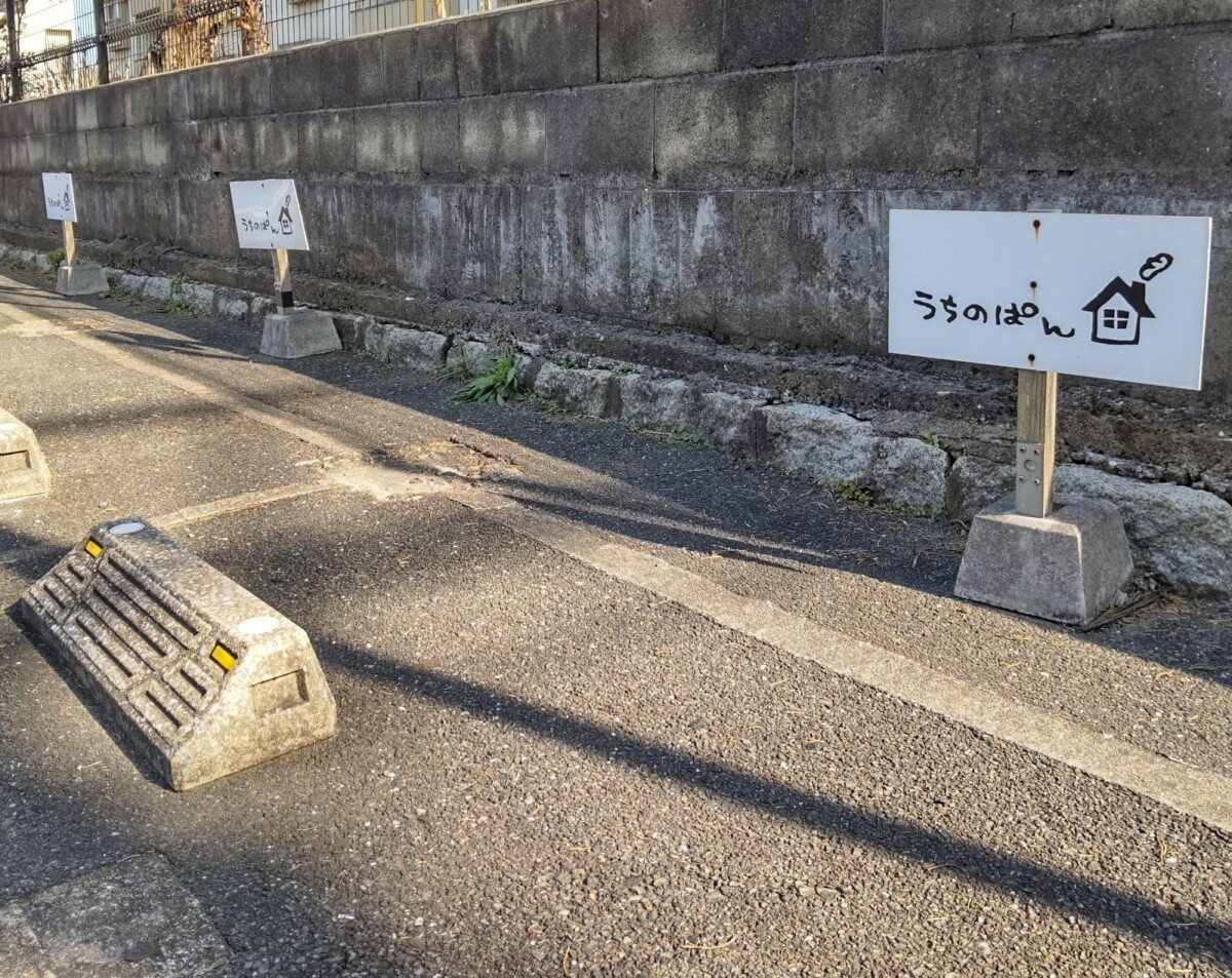 また、お店の横の道から入ってすぐ左に、うちのぱんと書いている4台分の駐車場があります。店舗の前などに停車しないように注意しましょう。