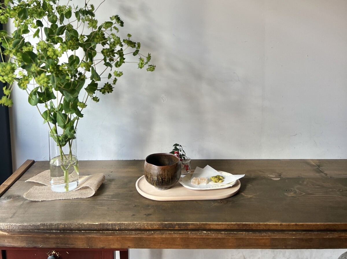 店内では、「自分にとっても、地域にとっても、楽しめるものを提案する」をコンセプトに、小石原焼や小鹿田焼、波佐見焼のほか、九州・地元アーティストの商品が展示販売されています。月によっては、絵や食材なども販売されており、カフェだけではない楽しみ方もできます。