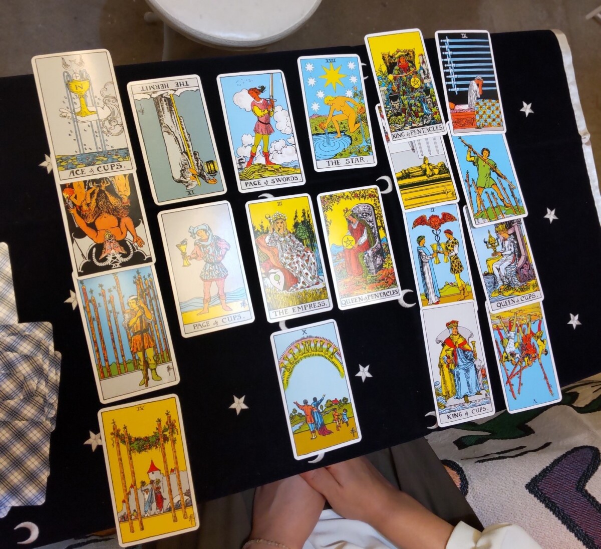占い師の麻紀さんがタロット占いを中心に、算命学を合わせているそう。タロットは一つの質問に対して一つの答えを示すもので、今の自分の意識や考えてもいない潜在的な意識を表してくれるのだとか。