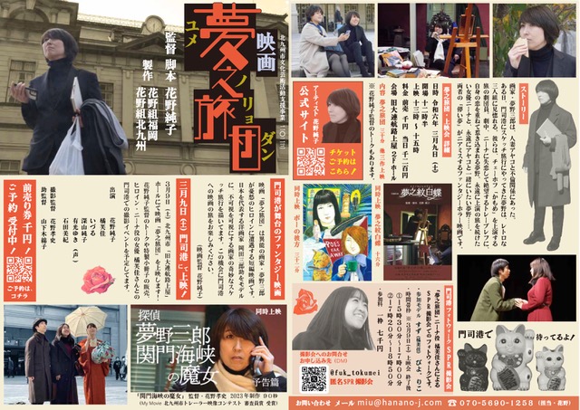 当日は、午後1時から午後3時まで(開場は午前12時30分~)上映会を開催。『夢之旅団』を含む複数の短編映画の上映や、花野純子監督によるトークショーが行われます。