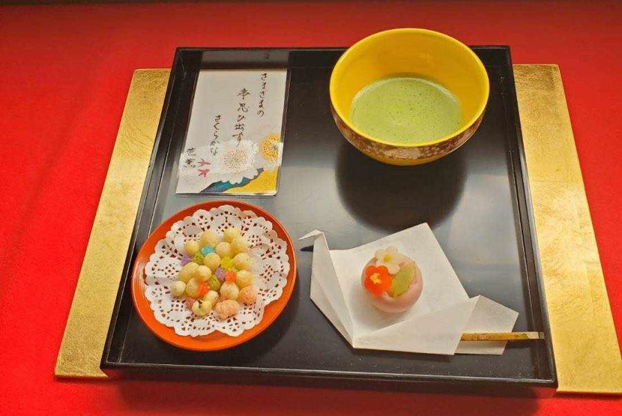 桜を活けている「一の間」の隣にある「二の間」で提供されるので、桜も十分に楽しむことができます。春をイメージした可愛らしいお菓子も堪能することができ、存分に季節を感じられそうですね。