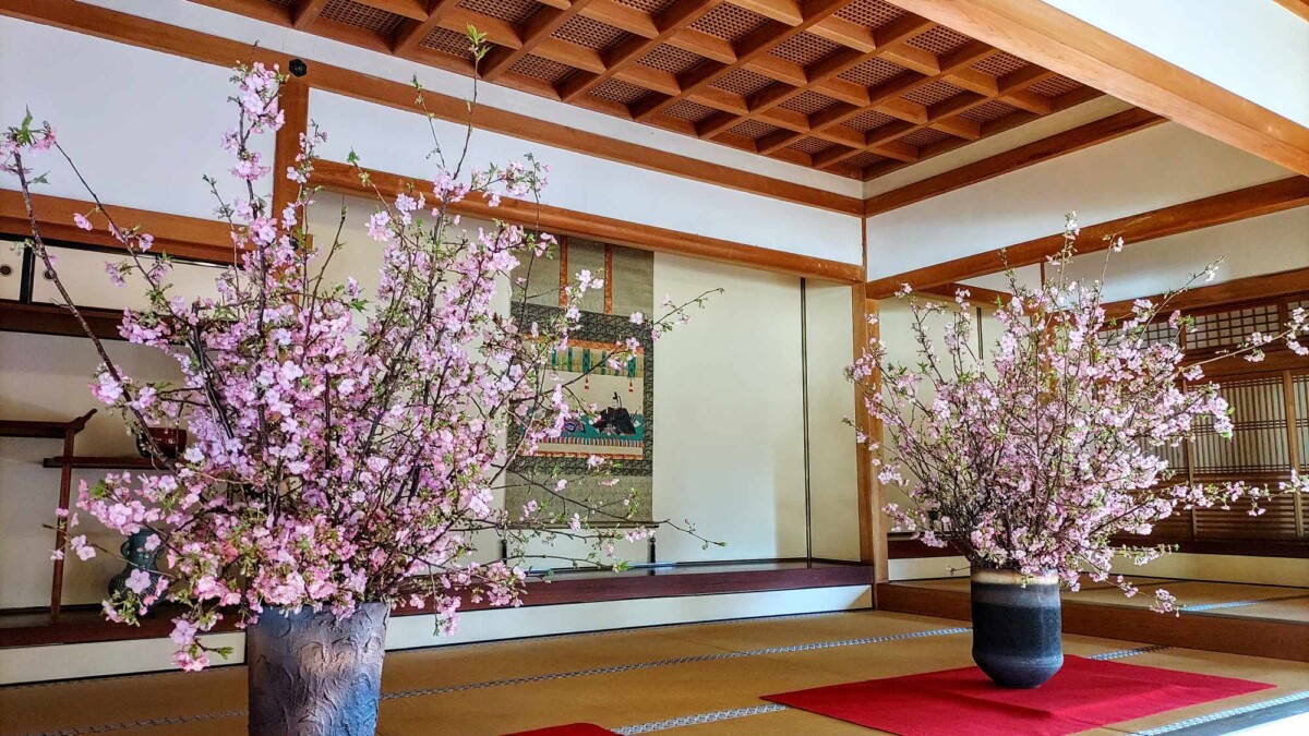 現在、市民や観光客に日本の春を一足早く楽しめるように、書院棟の中に桜の花が生けられています。