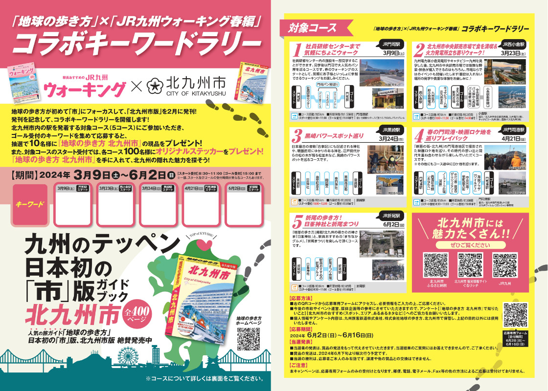 そんな『地球の歩き方 北九州市』の発行を記念して、JR九州の恒例企画「JR九州ウォーキング」とのコラボイベント「コラボキーワードラリー」が開催されます。期間は3月9日~6月2日まで。