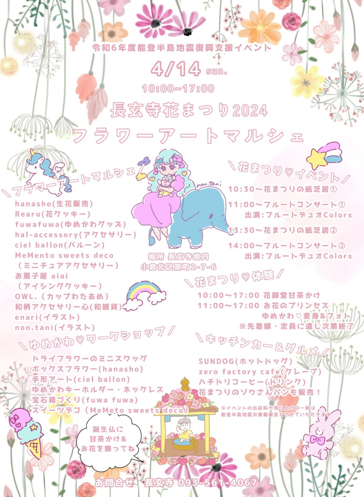 当日は花まつりの紙芝居や、花がテーマの曲を中心としたフルートデュオコンサート、“お花のプリンセス”に変身できる「ゆめかわ♡変身&フォトブース」などイベントも実施します。
