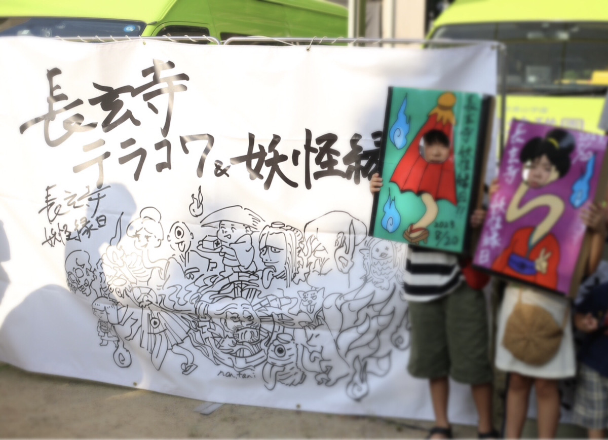 「子どもたちに楽しい夏休みの思い出を作ってもらいたい」「若い世代のお寺離れが進む中、子どもたちがお寺に足を運ぶきっかけを作りたい」という想いから、お盆の時期には長玄寺 おてらのこわ〜いこわいおはなし会「テラコワ」と「妖怪縁日」を実施しています。