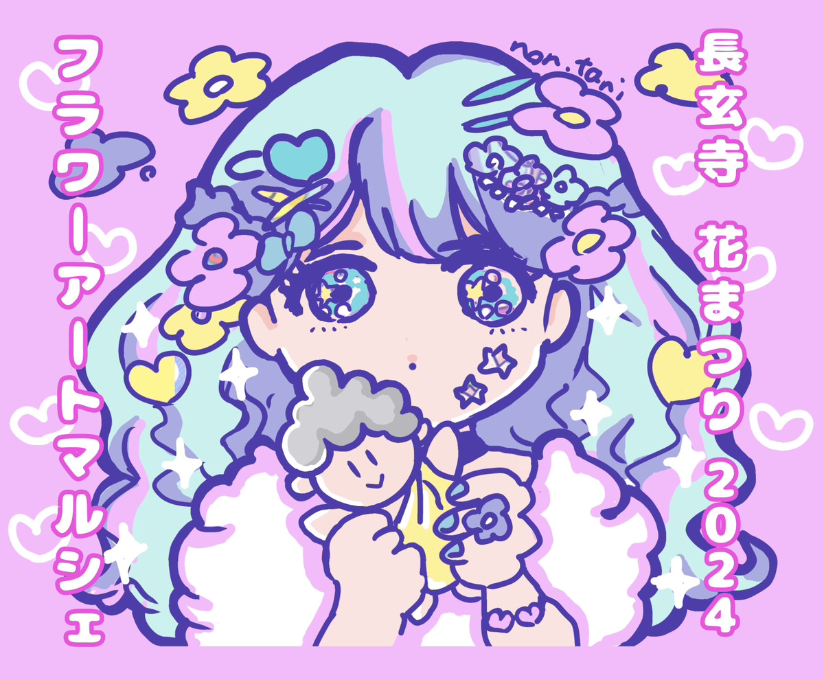 「フラワーアートマルシェ」では、生花の販売やお花モチーフのクッキー、ゆめかわグッズなど「お花とゆめかわ」をテーマにしたハンドメイド雑貨の販売を行います。また、ドライフラワーのミニスワッグ・ボックスフラワーづくりや手形アート、キーホルダー・ネックレス・宝箱づくりなどのワークショップも同時に開催します。