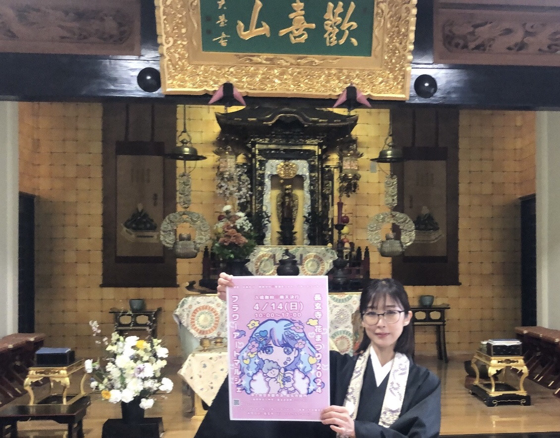 北九州市小倉北区原町にある長玄寺で4月14日、お釈迦さまの誕生を祝う「花まつり」とともにお花をテーマにした「フラワーアートマルシェ」が初めて開催されます。入場無料で雨天の場合も実施予定とのことです。