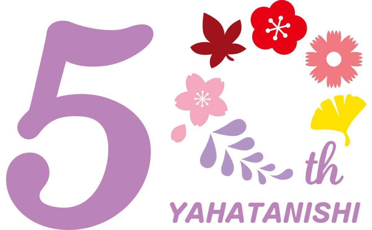 ロゴマークのデザインは、八幡西区内各地域の四季折々の植物「梅」「桜」「藤」「コスモス」「紅葉」「イチョウ」を散りばめて、リースに見立てられています。これらの木々が毎年芽吹いて咲き誇るように、八幡西区が10年後、20年後、さらに50年後に向けて発展するよう、願いが込められているとのことです。