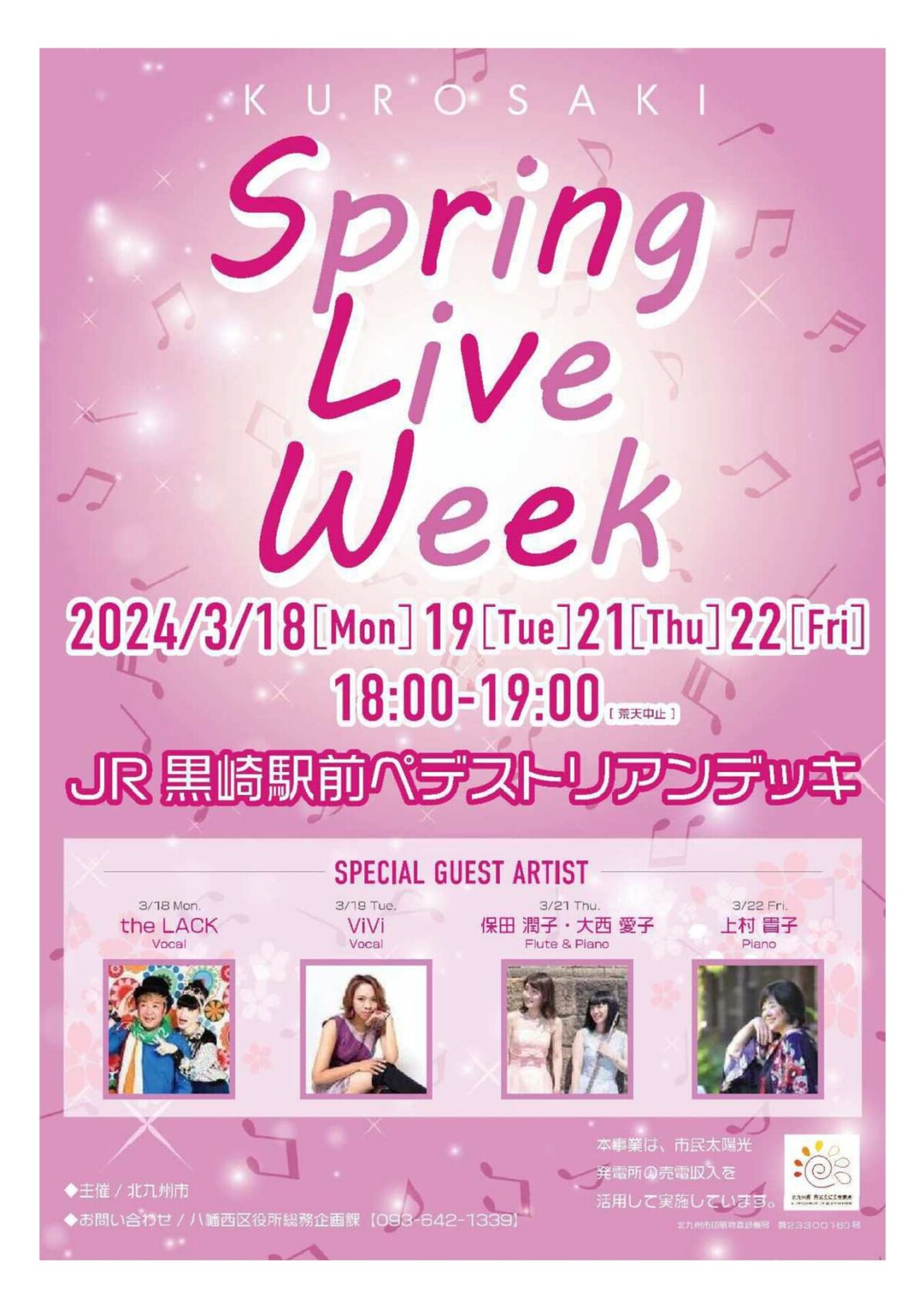 JR黒崎駅前ペデストリアンデッキ(北九州市八幡西区黒崎3-15)で「スプリングライブウィーク」が開催されます。日程は、3月18日と19日、21日と22日の4日間です。