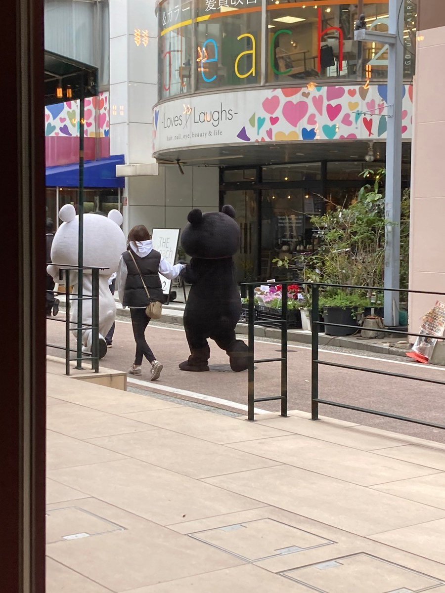 ていたんとブラックていたんが歩いていました。ちなみに「ていたん」の名前の由来は「低炭素社会」に由来するって知っていましたか? 編集部員は北九州市の環境への取り組みについて学ぶ検定「環境首都検定」で知りました。