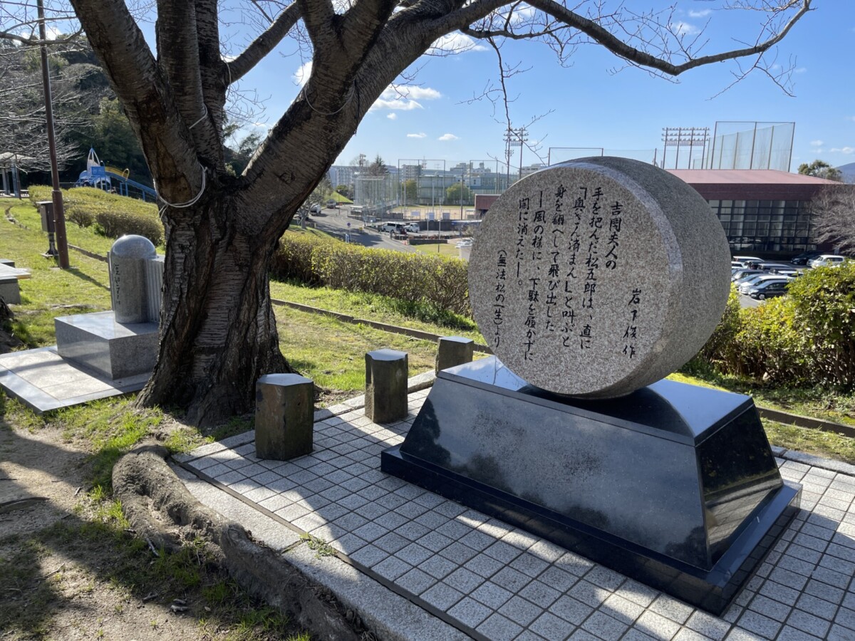 (2024年4月の様子)さくら広場の駐車場側には、様々な形をした石碑がいくつかありました。