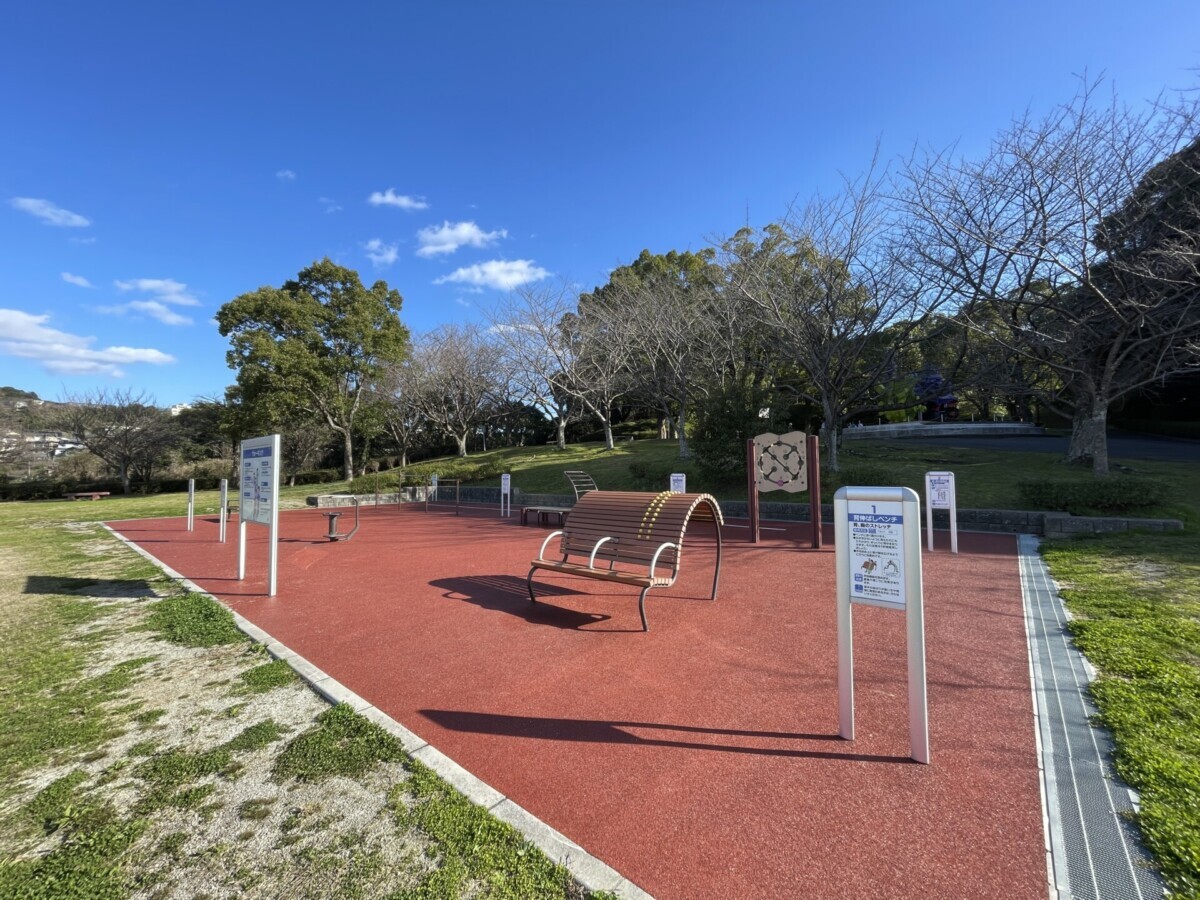 1つずつ名前や使い方が書いてあり、地面もクッションがあって歩きやすくなっているので、老若男女問わず利用しやすいです。