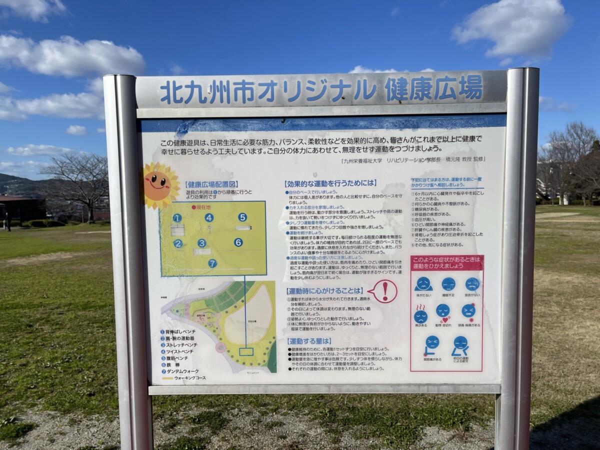 7種類の健康遊具が並んでおり、使う順番も示されていました。順番通り使用するとより効果的だとか。