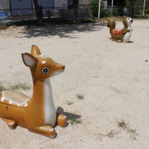 こちらの広場では、他にも動物の形をした揺れる遊具などもあり、小さな子どもが親子で遊ぶ姿が多く見られました。東屋やベンチも複数あるので、休憩しながらゆっくりと遊ぶことができますね。