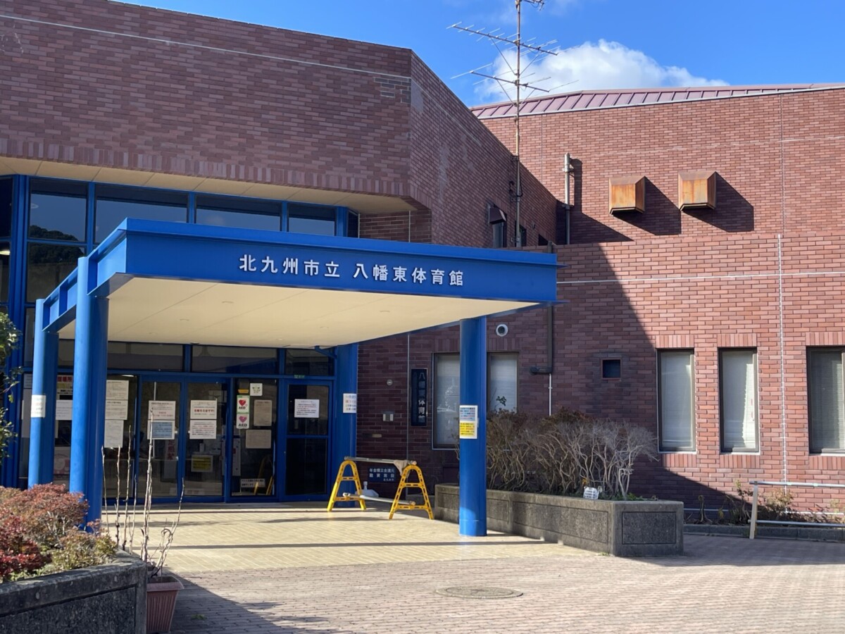 駐車場に戻ろうとすると、隣に何か建物がありました。近づいてみると、八幡東体育館と書かれています。