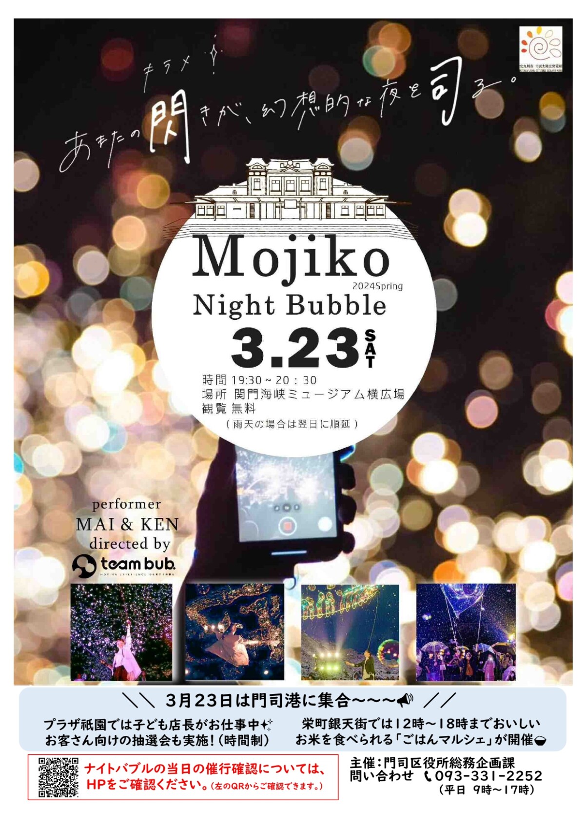 関門海峡ミュージアム横芝生広場(北九州市門司区西海岸1-3-3付近)で3月23日、「門司港ナイトバブル2024春」が開催されます。