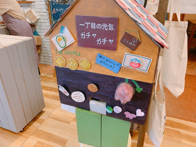 「ドリンク券やサンドイッチ券、バッジなどが入っていて、全て300円以上のものです。ガチャガチャマシンはスタッフの手作りなんですよ!ちゃんとカプセルが出てきます!」
