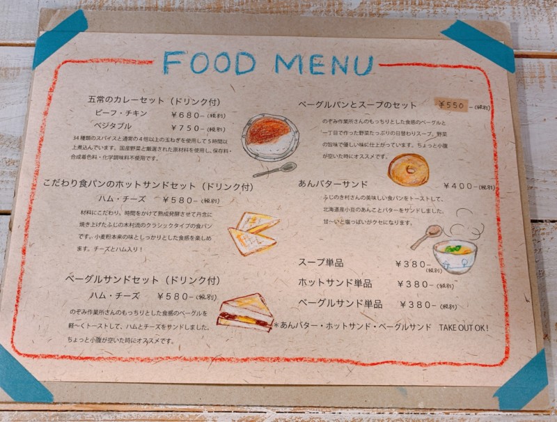 「カレーやサンドイッチ、パン、ベーグルは、桑の実工房さんの食器を使っています。テイクアウトもできるのでお気軽にお声掛けください」