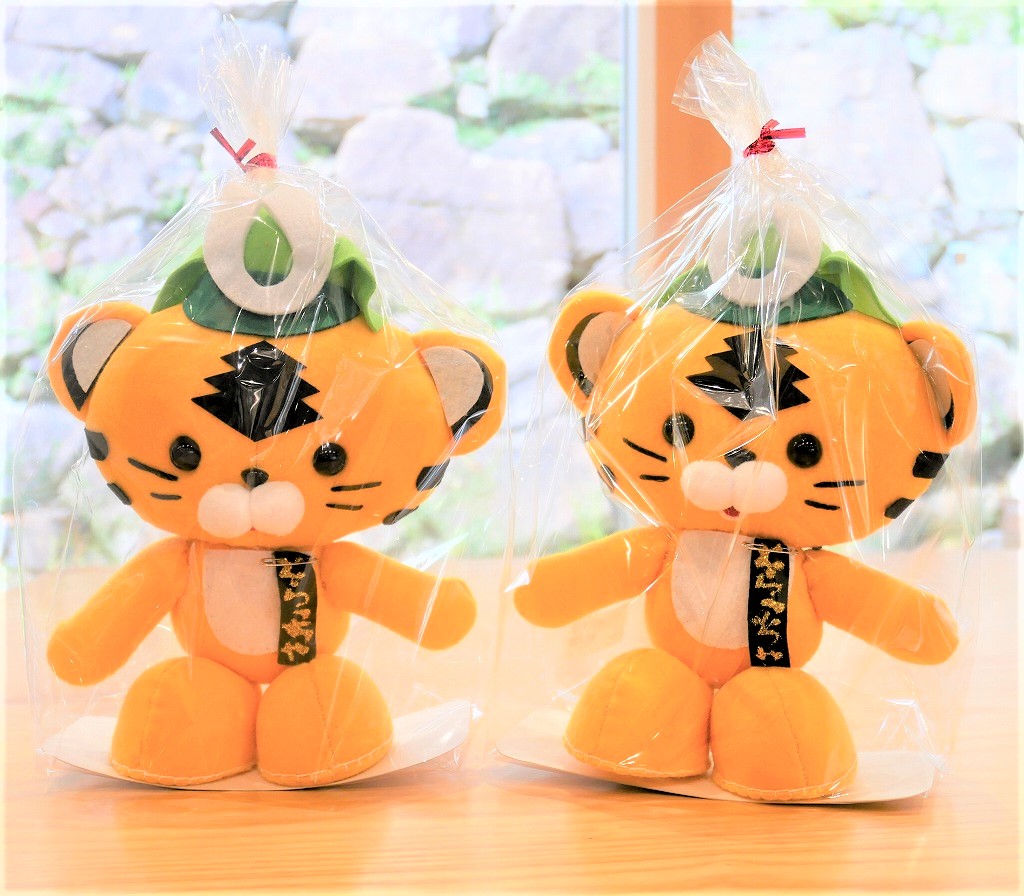 小倉城天守閣1階・2階に展示されている「迎え虎(オス)」「送り虎(メス)」の絵が元になっている、小倉城のマスコットキャラクター「とらっちゃ」。さまざまな関連グッズがありますが、編集部一押しは、しろテラスのスタッフのお母さんが手作りしているというぬいぐるみ! 1体3000円。