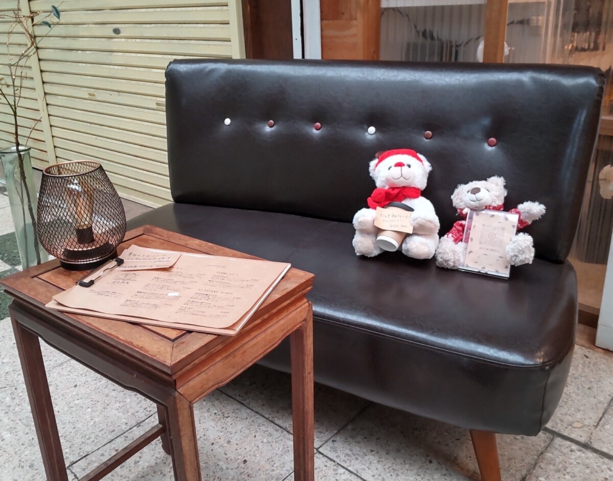 店内はカウンター4席と、テーブル2席の小さな喫茶店。アーケード街で雨風にさらされないので、お店の前にもソファー席を設けています。