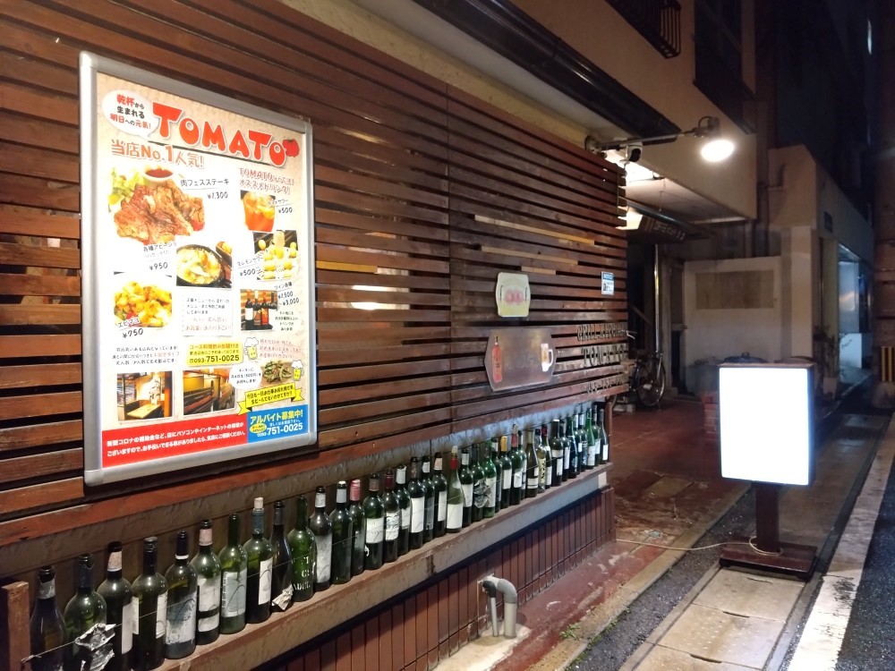 そしてTOMATOで楽しんでいる最中に、かねてから訪れてみたいと思っていた「若松 花のチモト」でもう1バル使用したいことを思い出しました。幸いにも店は隣だったこともあり、マスターに相談すると「行って来ていいよ、注文して出来上がったらここへ持って来てもらったらいいよ!」とのことで、食事の途中ですが、若松 花のチモトへ向かいました。