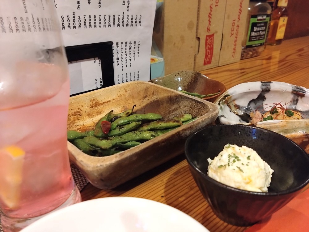 筆者は、以前から飲んでみたかった「北九州レモンサワー」をチョイス。酸味の爽やかなパンチでリフレッシュ!「おつまみ3点」はどれもとても美味しく日々の料理づくりの刺激にもなりました。おつまみは日がわりですが、枝豆は定番で不動の人気メニューだそう。