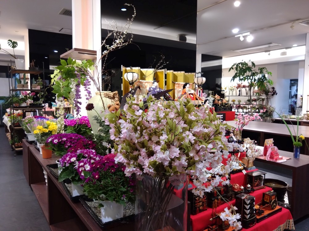 店内は、桃の節句の飾りが華やかなです。今回は季節のブーケを作ってもらいました。