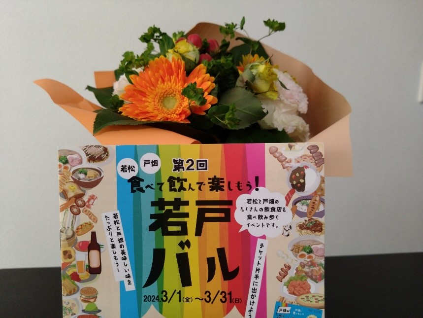 家でブーケを若戸バルに参加した記念として、あらためて撮影。