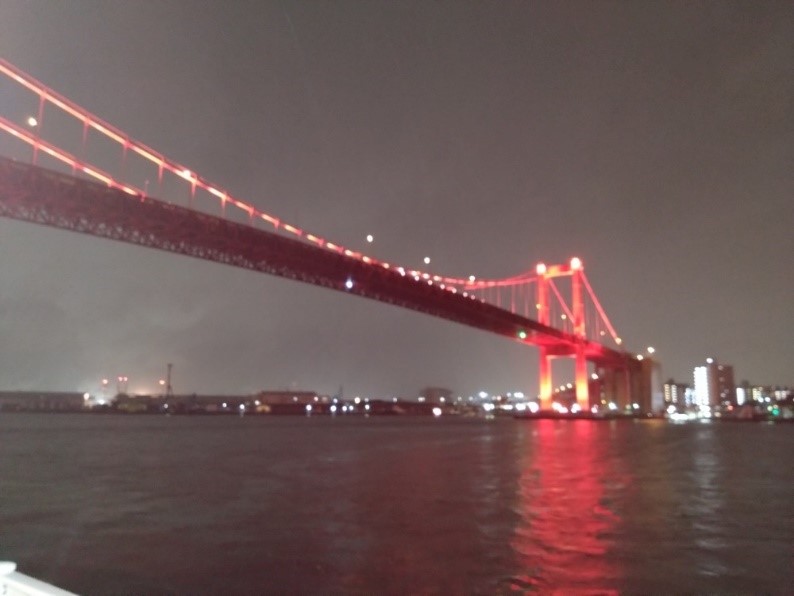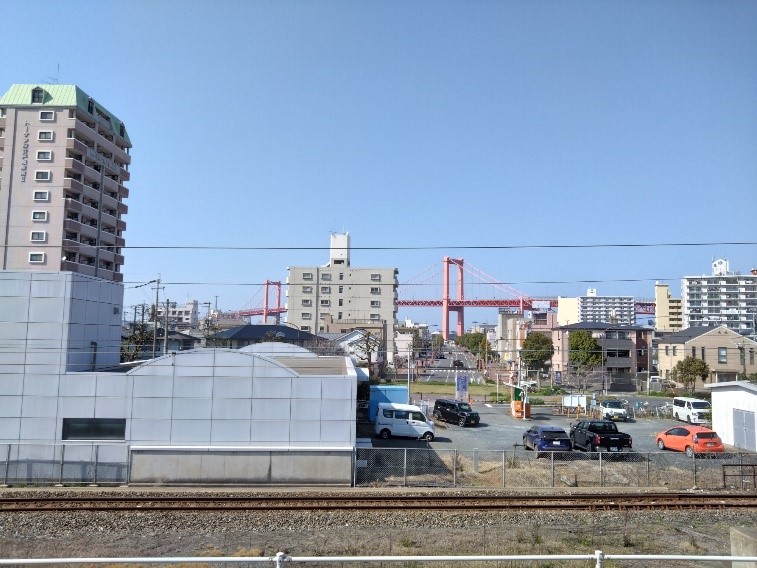 最後のバルを使用するため日を改めて昼間、電車で戸畑へ。駅のホームから見える若戸大橋を眺める景色は気持ちが晴れます。青い空に橋の赤が映えますね。