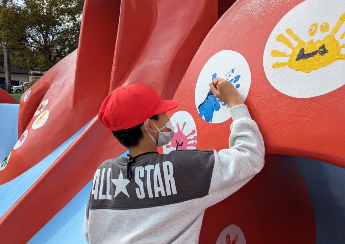 大池公園の「タコの滑り台」リニューアル 地元児童や生徒が塗装【北九州市八幡西区】