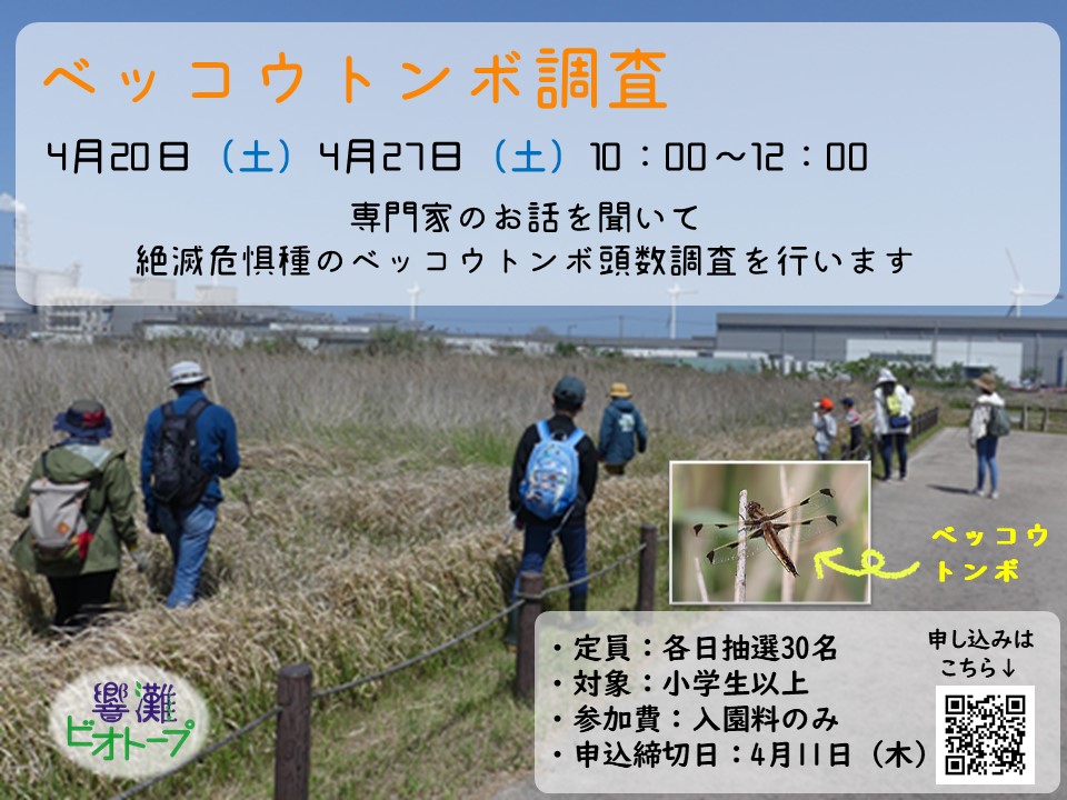 ▶響灘ビオトープ 「ベッコウトンボ調査」参加申し込みはこちら