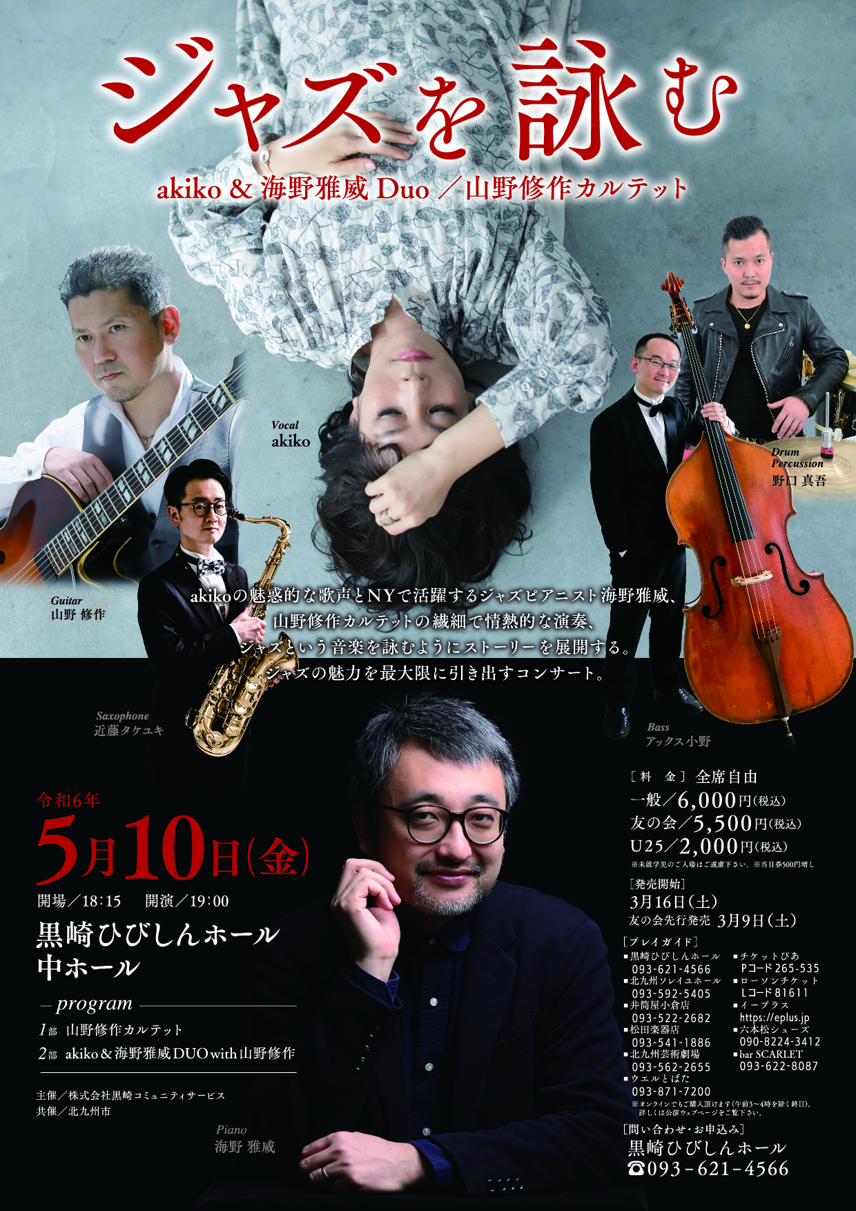 「ジャズを詠む」akiko&海野雅威DUO・山野修作カルテット/黒崎ひびしんホール
