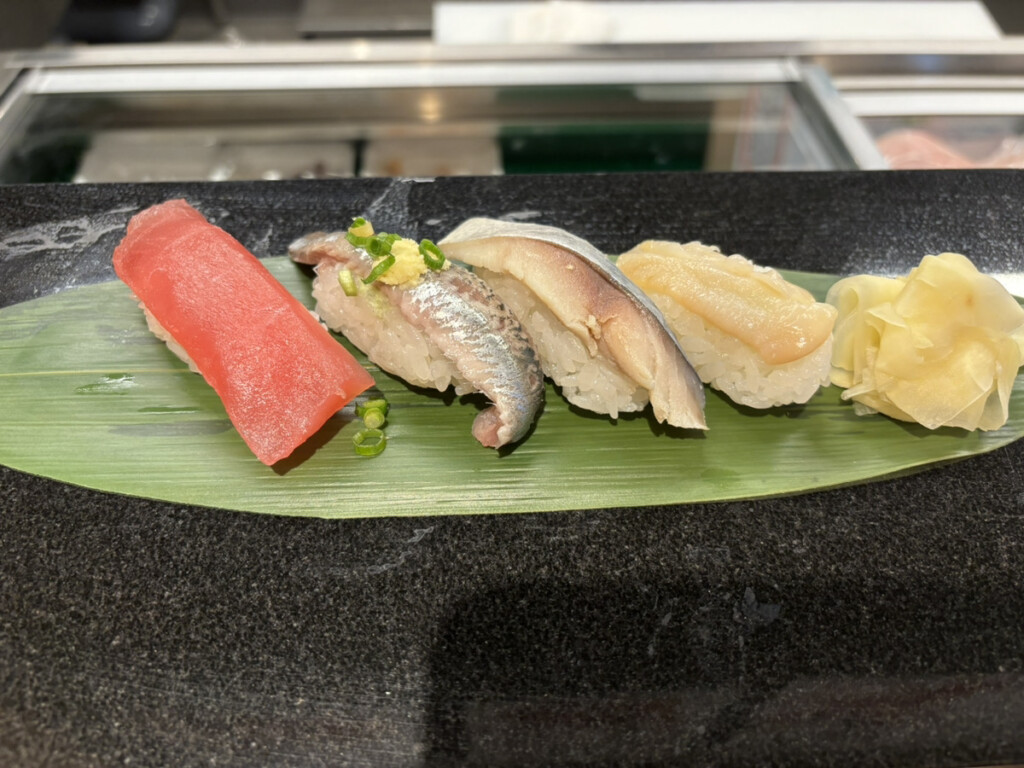 まぐろは赤身の旨味をしっかりと味わえました。いわしは脂がのっていて、しめさばはさっぱりと、つぶ貝はコリっとした食感で、それぞれ充分な味わいです。