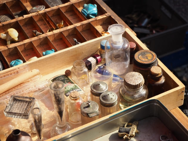 当日は和洋骨董をはじめビンテージアイテムや、陶器・着物・おもちゃ・レトロ雑貨などが並びます。30近くの出店者が参加するので、たくさんの商品からここだけの出会いを探すチャンス。また、飲食店も出店予定でグルメも楽しめます。