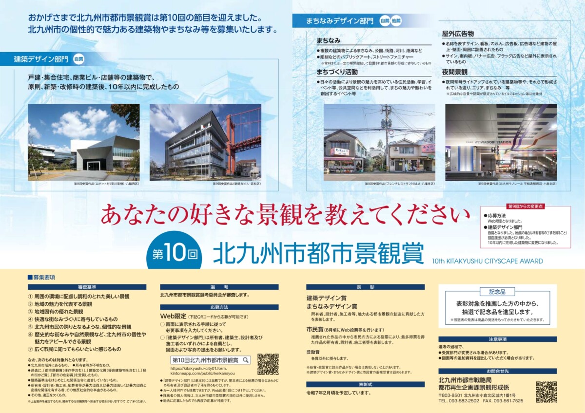 北九州市は現在、市内にある個性的で魅力ある建築物やまちなみ等を表彰する「第10回北九州市都市景観賞」の応募を受け付けています。募集期間は5月31日まで。