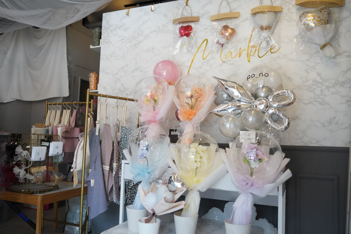小倉南区城野のマンション1階にある「Marble(マーブル)」。バルーンギフトやハンドメイド雑貨を販売しているお店です。