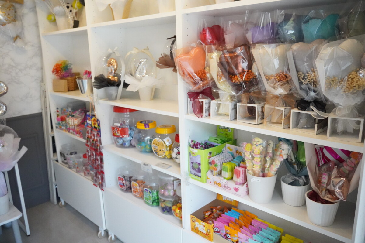 また、韓国グミなどの見た目から楽しめるお菓子も販売。バルーンと組み合わせてちょっとした贈り物にも人気なのだとか。もちろん1つずつ購入することも可能です。