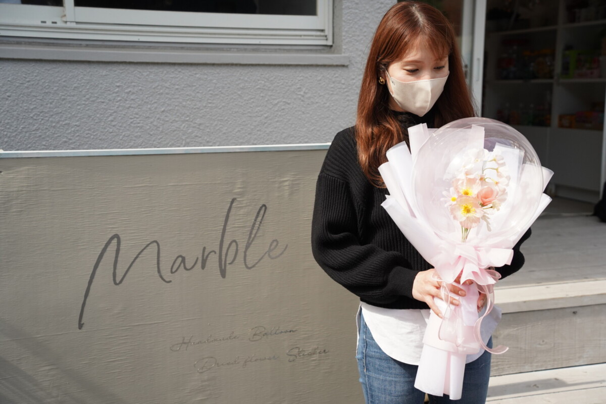 お店に置いてあるかすみそうは自分たちで染めており、バルーンに入れたり一緒に束ねたりと様々なアレンジができるのだとか。注文が入ると1人1人の要望に真摯に向き合い対応しているとのことで、こだわりの贈り物ができそうですね。