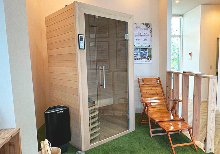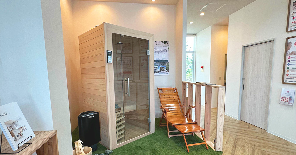 「住まいと暮らしのONE STOP イオンタウン黒崎店」(北九州市八幡西区西曲里町3-4)のショールームに4月20日、ルームサウナが設置されサウナ体験ができるようになりました。