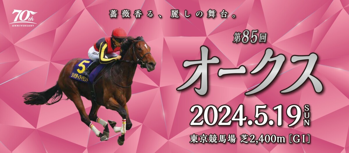 5月19日は、牝馬三冠レースの2戦目であるオークス(優駿牝馬)が開催。東京競馬場芝2400mを舞台に3歳牝馬限定で争われます。牝馬三冠の中では最も距離が長く、スピードだけでなくスタミナも要求されるレースとなっています。