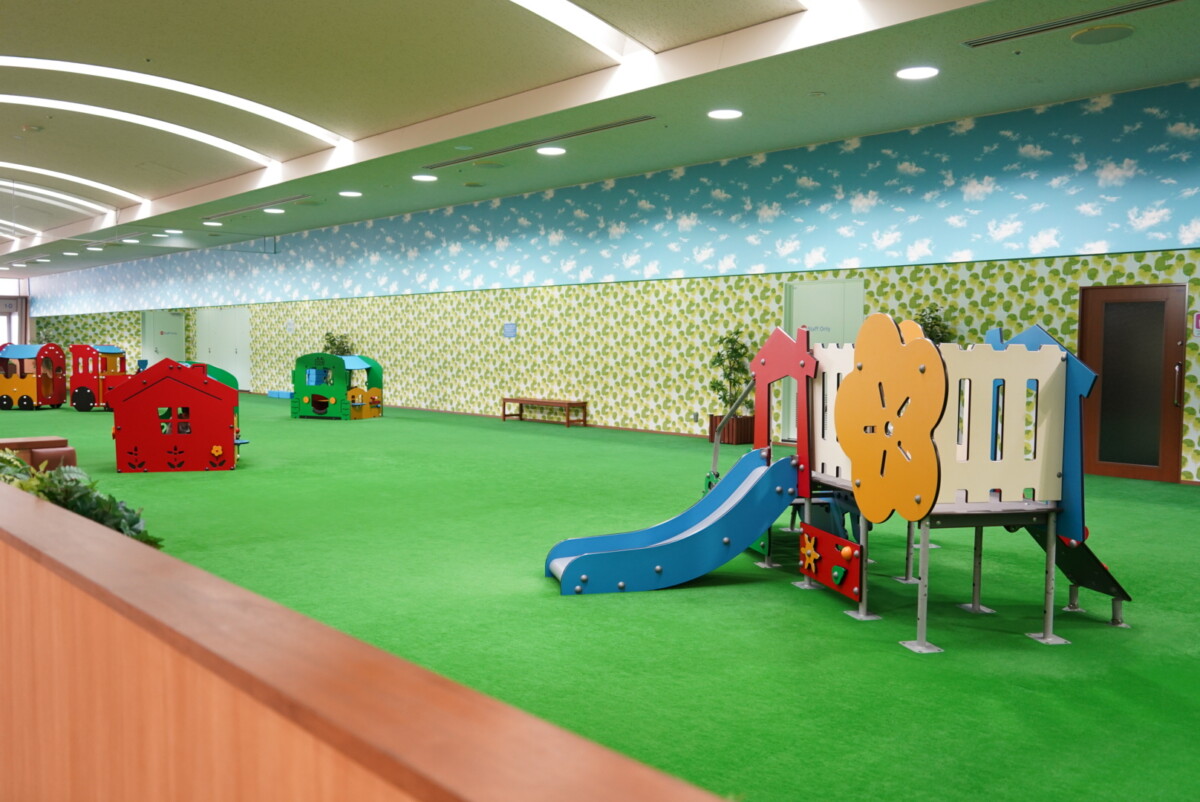 高さ4メートルのタワーネットや大型遊具のある2階建ての「キッズプラザ」、授乳室やベビーベットの完備された「わくわく子ども広場」などの室内施設があるので、小さなお子さんがいても安心です。