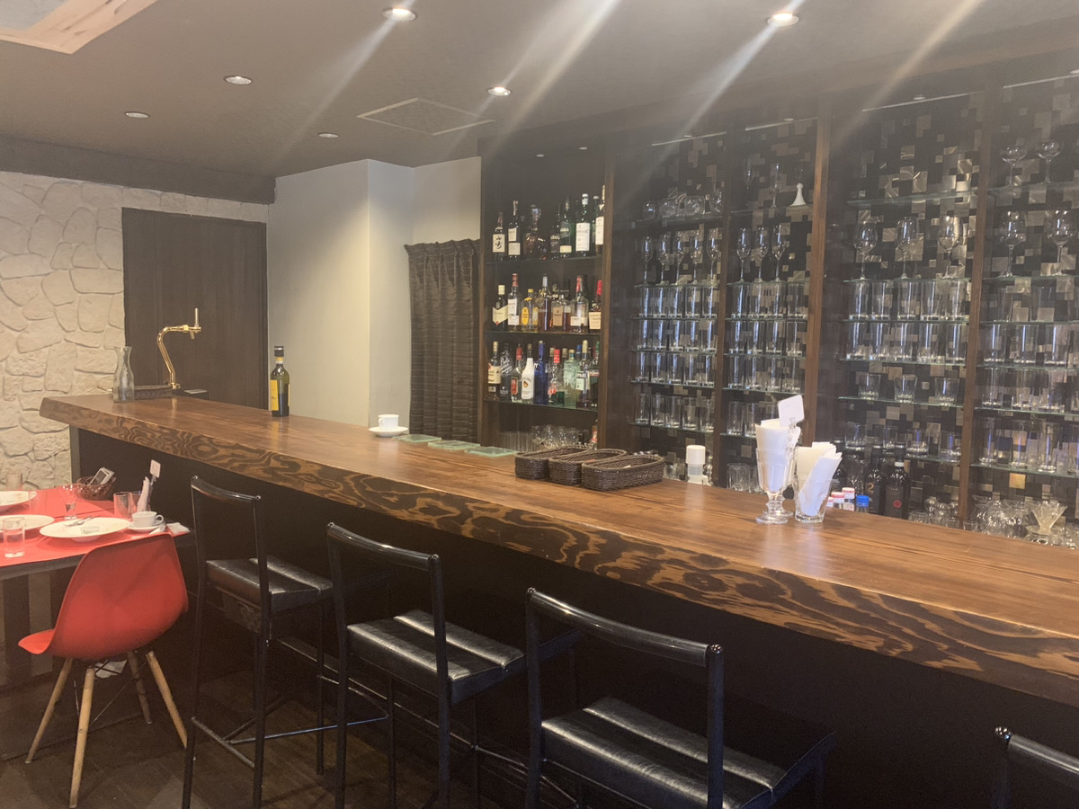 扉をあけて中に入ると、右手にバーカウンターとテーブル席が5つほどあります。