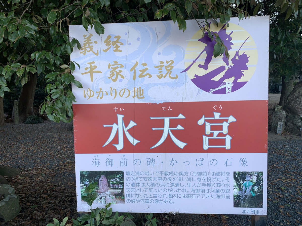 女官は河童に化身したという伝説が残されており、平教経の妻は「海御前(あまごぜ)」と呼ばれ河童の総帥として境内に祀られています。