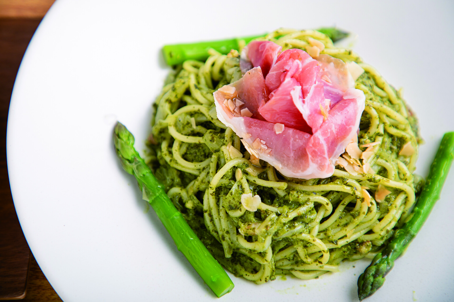 松柏園ホテル内のレストラン『ザ・テラス』より新ランチメニューが登場!!今回ご紹介するのが、初夏にぴったりな『ジェノベーゼパスタ』。爽やかなバジルの香りとナッツの風味がちょっぴり贅沢なランチタイムを彩ります。野菜ソムリエ厳選の野菜と合わせて、軽やかで風味豊かな一皿をお楽しみください。