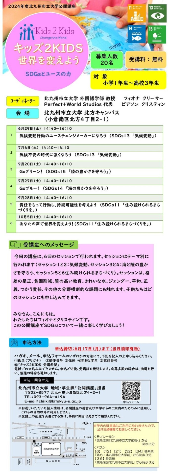 ジュニア向け講座【キッズ2KIDS 世界を変えよう】の受講生を募集します!/北九州市立大学