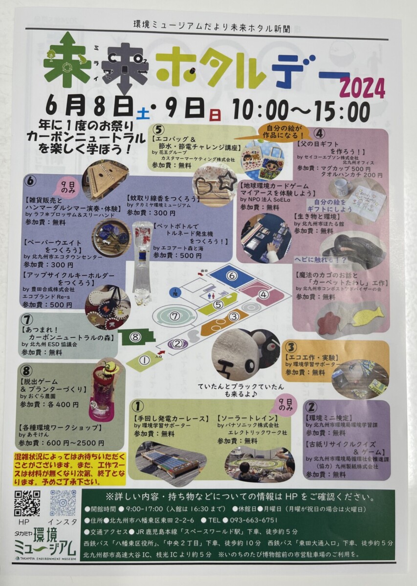 6月8日と9日の二日間、タカミヤ環境ミュージアム(北九州市八幡東区東田2-2-6)で「未来ホタルデー2024」が開催されます。時間は両日とも午前10時〜午後3時まで。