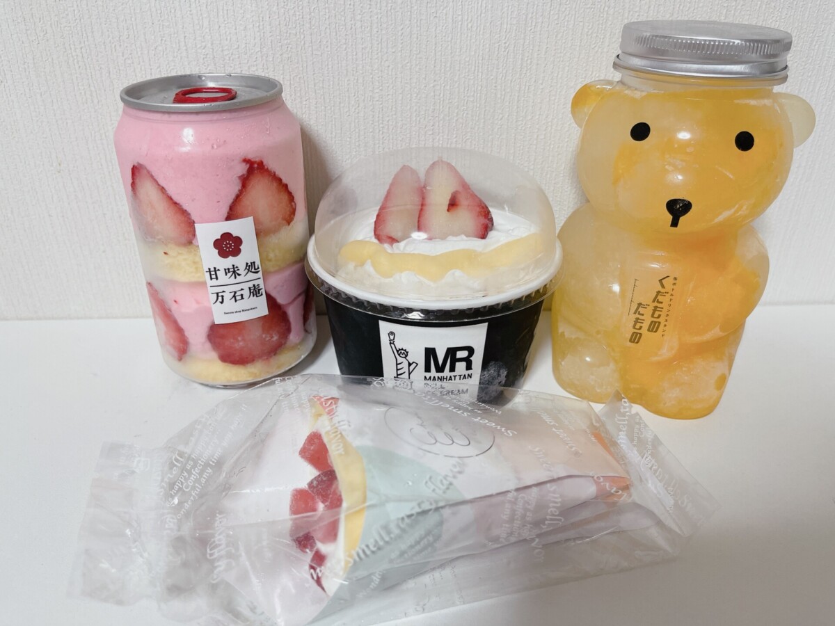 くまの容器に入った「くまボトル」や、おにぎりの形をした「おむすびケーキ」などもあり、味だけでなく、写真映えするような見た目も楽しめる商品が多く揃えられています。