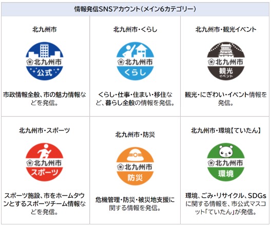 今回の実施により、北九州市公式SNSアカウントは6カテゴリーに集約。計12アカウントとなりました。