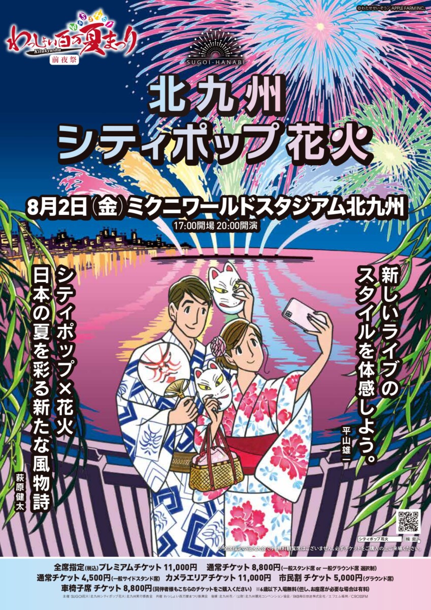 8月2日、ミクニワールドスタジアム北九州でわっしょい百万夏まつりの前夜祭となる北九州SUGOI花火2024「北九州シティポップ花火」が開催されます。