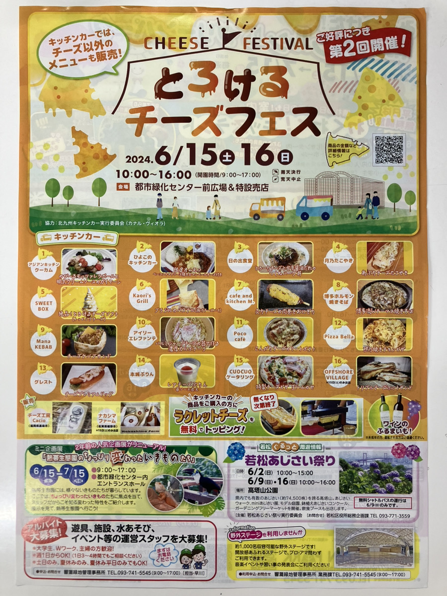 6月15日と16日、グリーンパーク(北九州市若松区竹並1006)の都市緑化センター前広場&特設売店で「とろけるチーズフェス 第2弾」が開催されます。